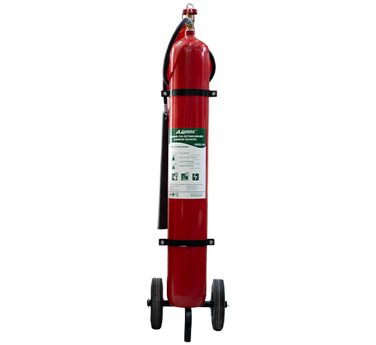 - It discharges carbon dioxide gas, which rapidly suppresses fire by displacing oxygen, without leaving any residue.