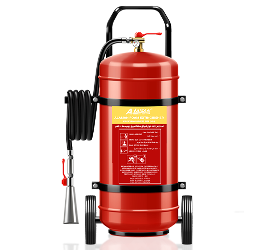 50 litre Foam wheeled extinguishers can be used on A and B class fires making them suitable for large warehouses and showrooms, petrol stations and gas storage facilities. These extinguishers are also MED approved.