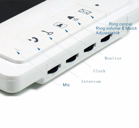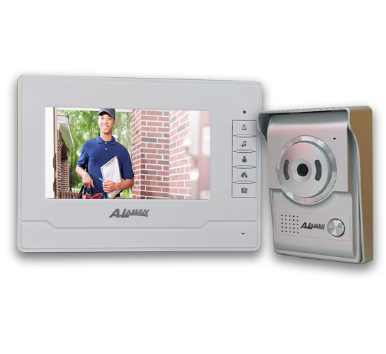 The item you are watching is our new arrival video door phone system. The monitor is equipped with 7″ high resolution color screen and the camera is 700TVL, which will enable you to see clearly who is at the door. The camera mounted at the outside of the door allows you to talk outside and the people at outside can also talk to you. This 2-way communication is an inexpensive and effective way to talk with the stranger at the door without actually opening the door. The outdoor camera has 4pcs 940 nanometer IR LED and IR sensor, the IR sensor will turn on the IR LED automatically when light in low level. It allows you can see clearly who is knowing the door even at the night, it is brilliant design . And this door phone can work with 12V electrical lock, so you can connect an electrical lock to this system. With this function, you don’t need go to the door to unlock for your guest, you just need to press unlock button on monitor to unlock. It will bring great convenience for you and your family members.(Please note the electrical lock is not included) .